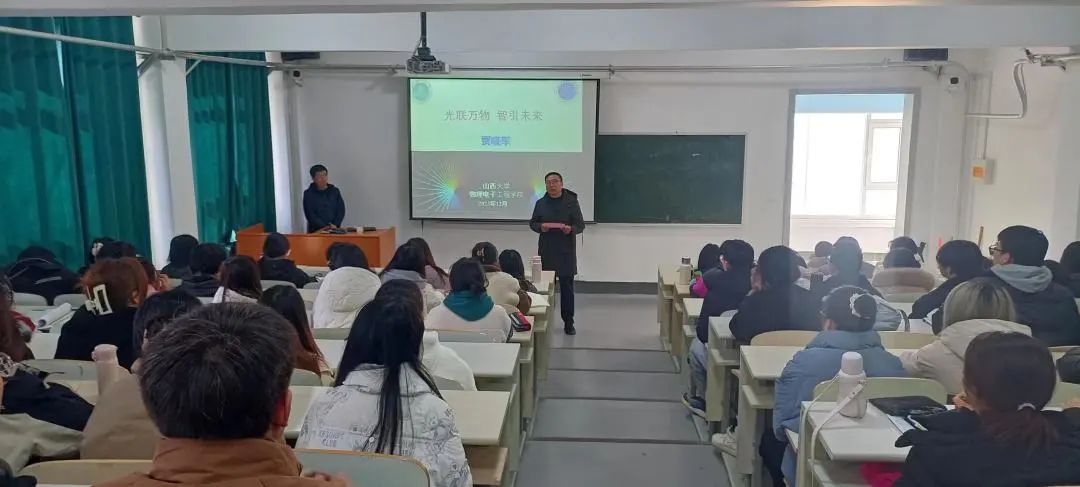 为了进一步推动大学生科学知识的普及,12月5日上午10点在4号楼422教室,我系特邀青年长江学者、国家杰出青年基金获得者、山西大学物理电子工程学院贾晓军院长给学生们做题为《光联万物,智引未来》的讲座,系主任刘建伟致欢迎词,我系百余名学生聆听了讲座。