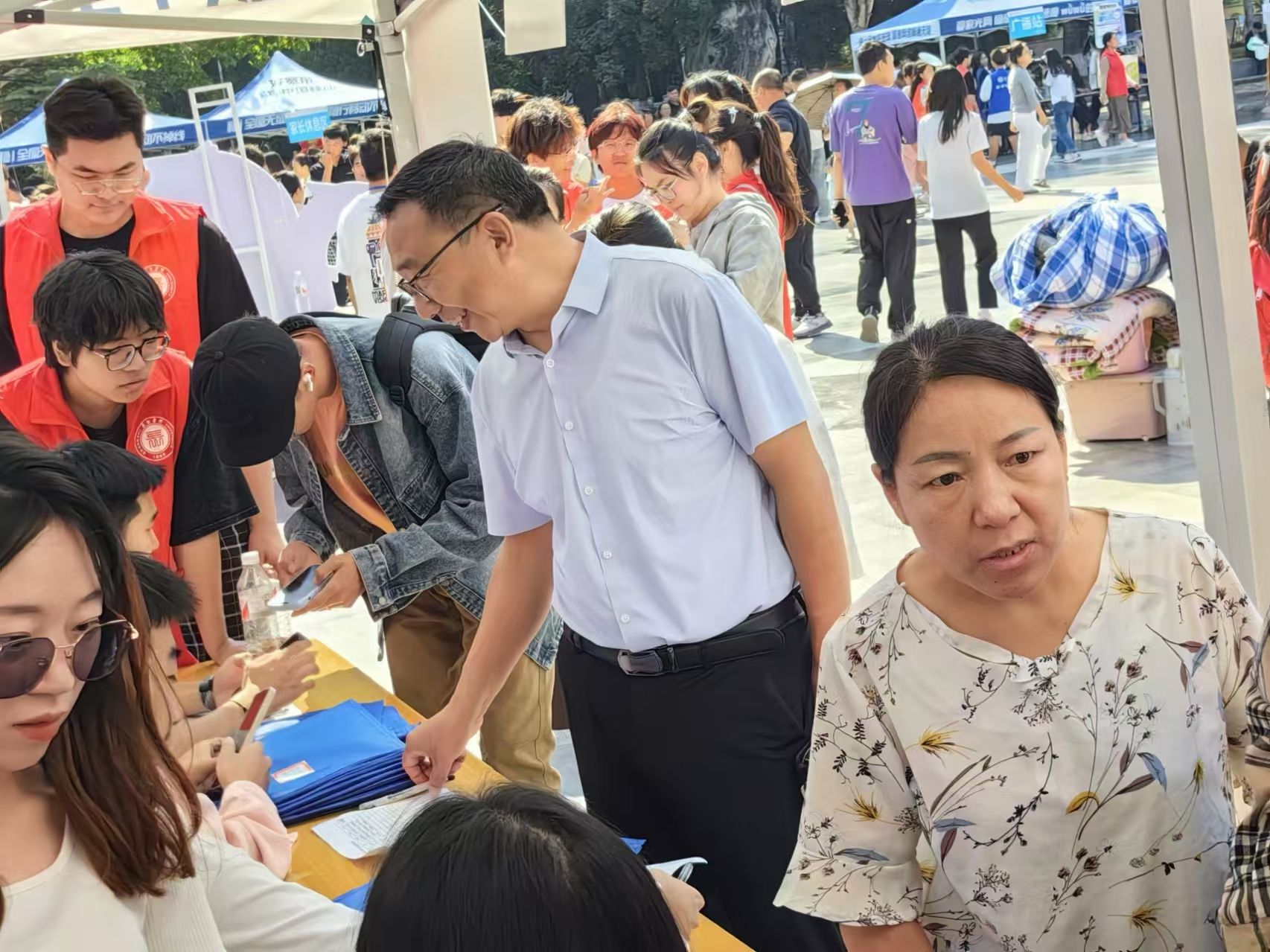 西汉姆联领导们现身迎新生报到处,期盼着新生的到来。他们将每一位新生都放在心上,他们与家长悉心沟通,和新生愉快交流,认真了解同学与家长的需求,精心指导学生的迎新工作,助力 24 级新生更快地融入大学生活的新画卷。