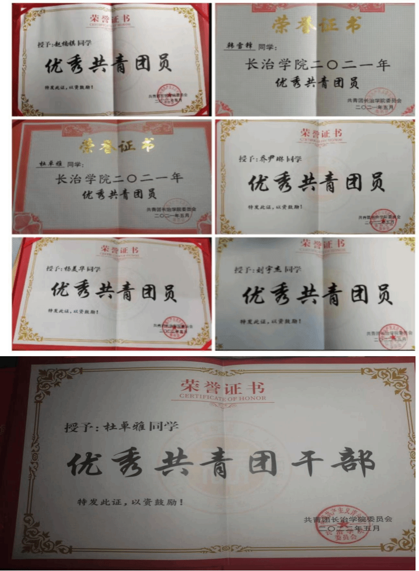 韩宇峰、秦雅鑫、张志春两次获得了国家励志奖学金,累计24名同学获得了校级奖学金,其中杜卓雅、韩宇峰、乔尹琳、秦雅鑫四位同学获得2022年综合一等奖学金。7名同学获得优秀共青团员,10位同学被评为优秀学生,1位同学被评为优秀共青团干部,2名同学被评为优秀学生干部。