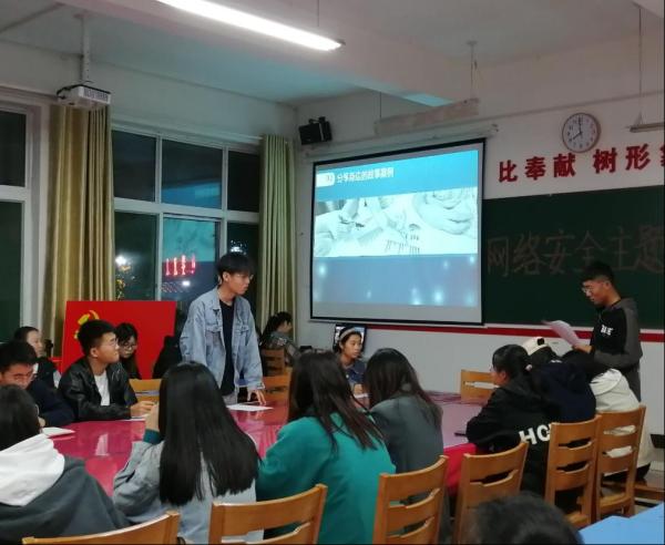 本次活动主要内容有:同学们观看网络安全宣传周短视频,该短视频中展现了国家对网络安全教育做出的措施以及保护好个人信息、面部信息、支付信息的重要性。随后,同学们进行快问快答及互动分享,并结合短视频与知识竞答过程中所学习到的内容发表自我感悟及身边故事案例,先由申元祥同学讲述自身所发生过的由于信息泄露遭受多次骚扰电话的案例,再由其他同志们发表自己身边所经历的事件,互相分享,提高防范意识。最后,观看了国家反诈骗中心app真实案例和该软件的正确使用方法,在这个app里介绍了多起不同类型的案例,网络安全与我们的生活息息相关,因此我们都要学会使用国家反诈骗中心app。