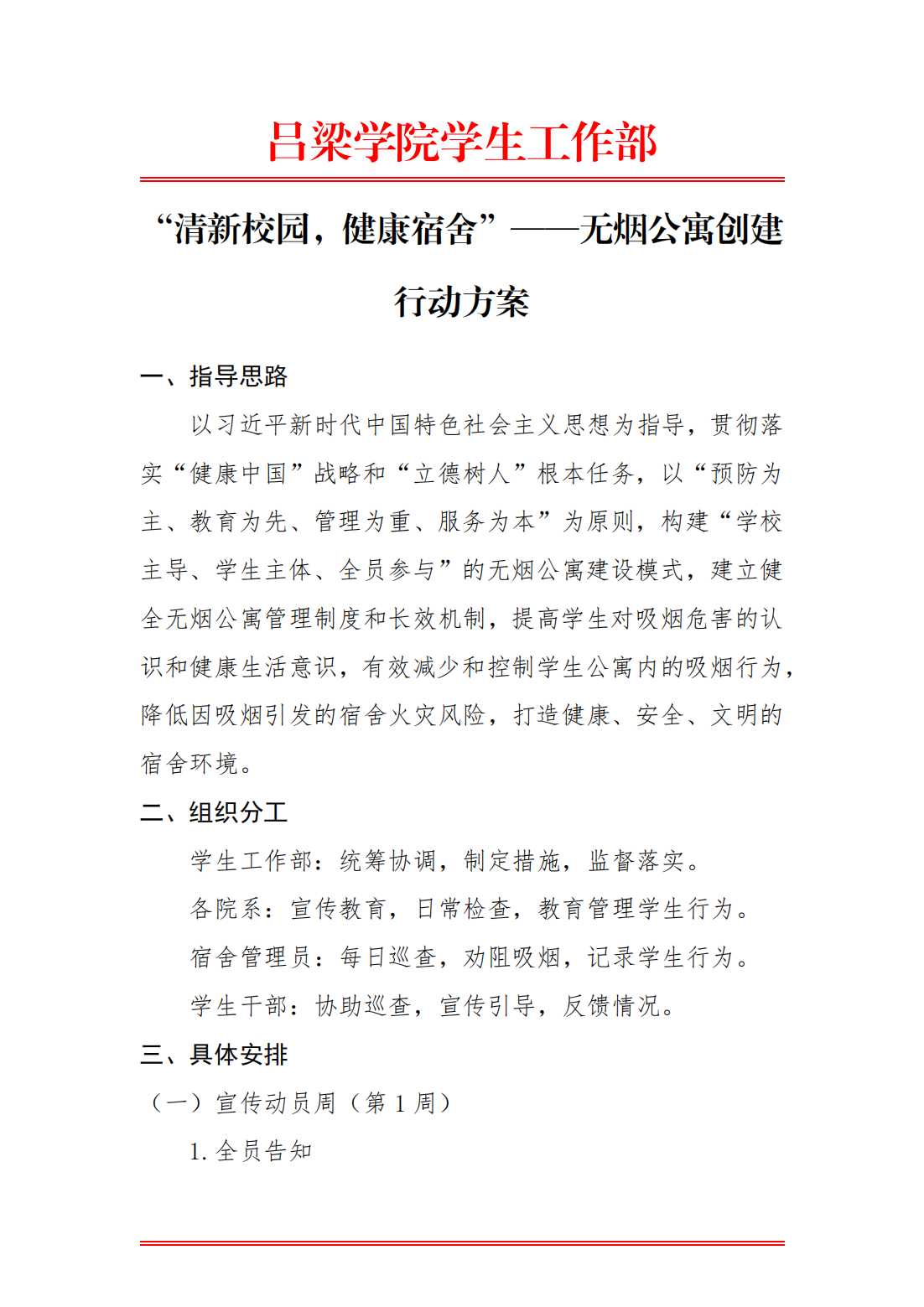 “清新校园,健康宿舍”——无烟公寓创建 行动方案