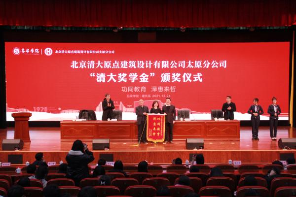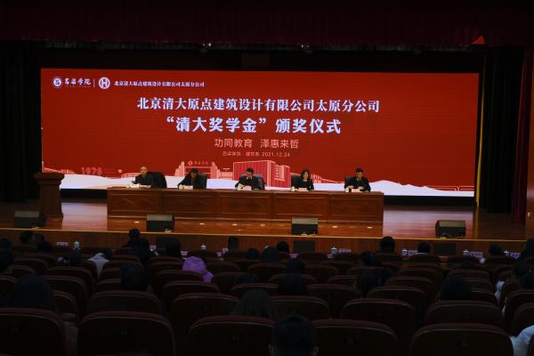 2021年12月24日下午,建筑系在工科楼报告厅举办吕梁学院“清大奖学金”颁奖典礼。出席本次颁奖活动的有吕梁学院党委常委副院长李宏荣、北京清大原点建筑设计有限公司太原分公司总经理贺小芳、合作交流处处长白晋明、建筑系领导班子及师生代表共计400余人。本次颁奖典礼由建筑系党总支书记王亮亮主持。