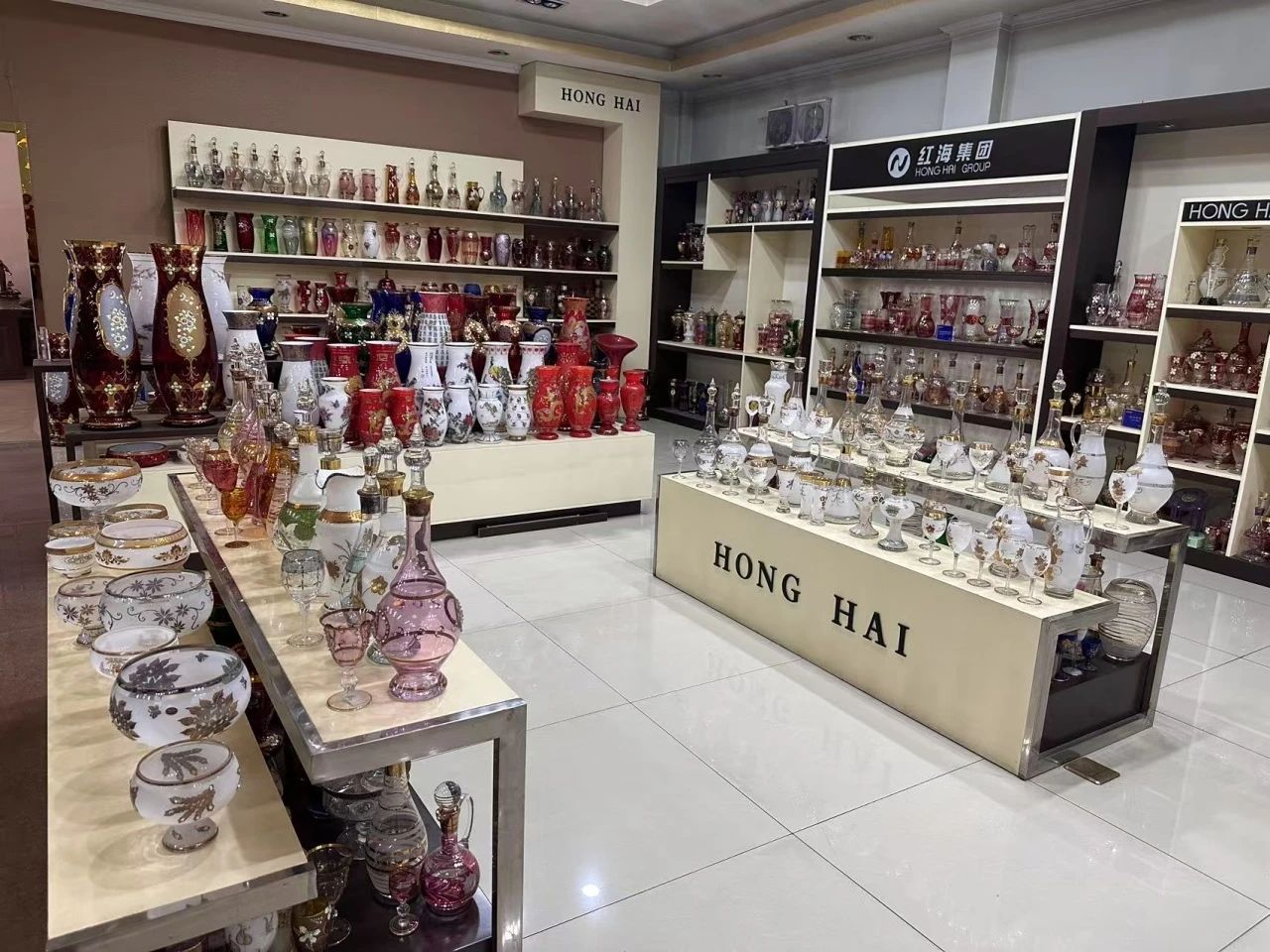 随着调研的深入,团队还发现了省级非物质文化遗产项目——玻璃金彩绘。团队实地探访了祁县红海玻璃有限公司,了解到该公司是一家集“产、学、研、贸、工、游”于一体的综合型出口企业,专注于研发和生产香水瓶、花瓶、酒具等200余种玻璃器皿,产品100%出口至“一带一路”沿线国家。其生产的玻璃器皿曾用于G20峰会国宴、“一带一路”国际合作高峰论坛、博鳌亚洲论坛、卡塔尔世界杯、北京冬奥会等重要场合。