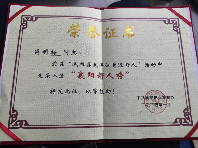 2022年02月获 襄阳市暖冬行动“优秀志愿者”;