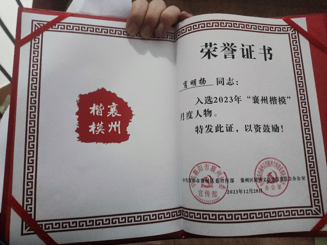 2024年01月获 襄阳市“暖冬行动”扫冰除雪优秀青年志愿者;