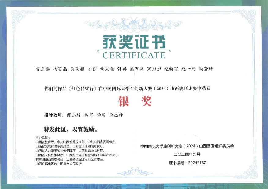 2024年09月获 吕梁市“鹏飞杯”第十一届创青春比赛优秀奖。