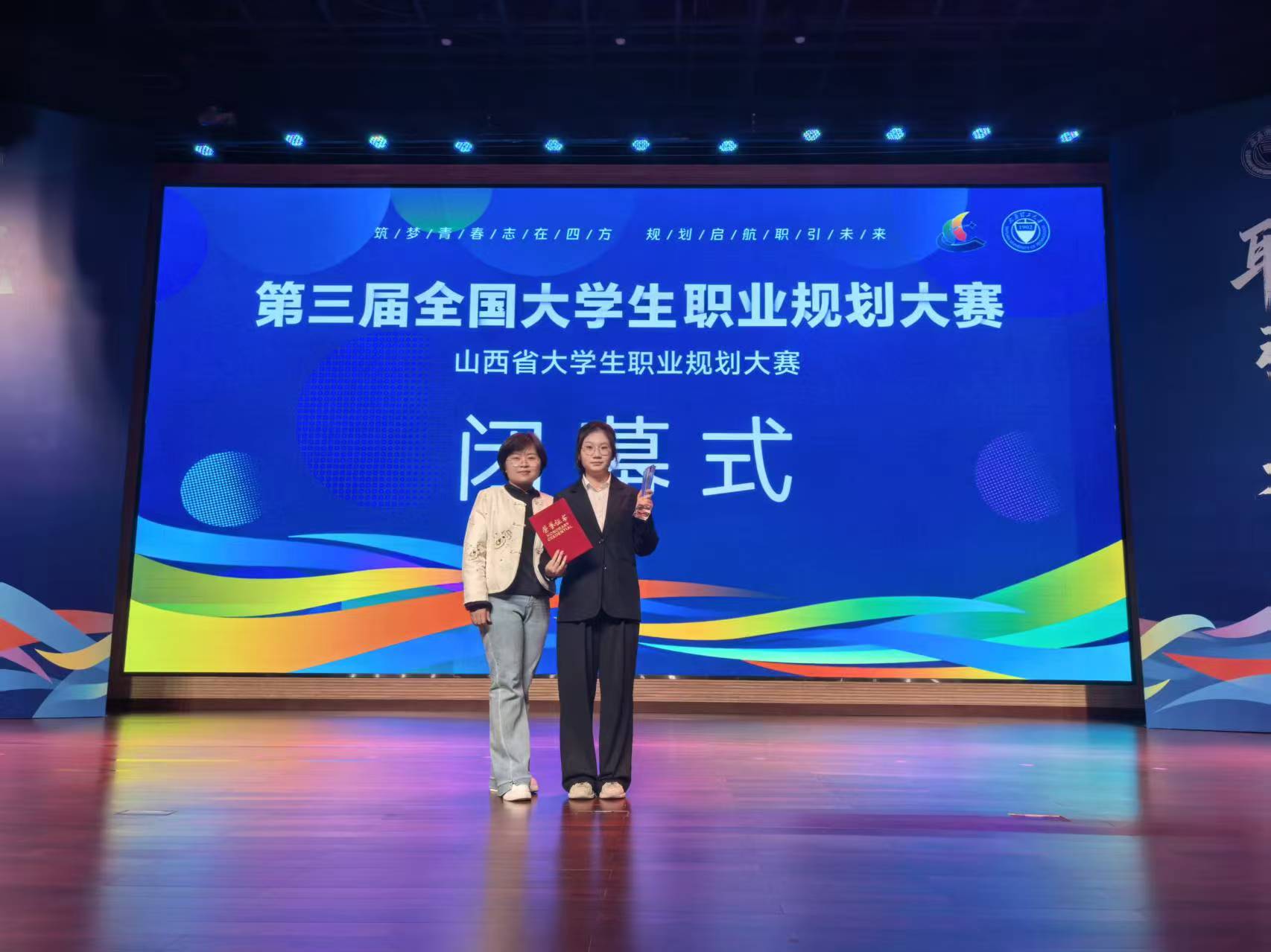 赛场之上,石茹玉同学不负众望,以清晰的逻辑、饱满的热情展开主题陈述,将城乡规划专业所学与吕梁乡土实际深度结合,生动诠释了扎根乡土、服务基层的职业理想与分阶段成长规划,充分展现了新时代吕院学子明晰的职业定位、务实的行动路径与强烈的社会责任感。面对评委的现场提问,她思路清晰、应答从容,专业的规划设计与真挚的职业追求,赢得了评委评委的高度认可与一致好评,最终以大学生职业生涯规划大赛成长赛道省赛排名第10的成绩获银奖1项。