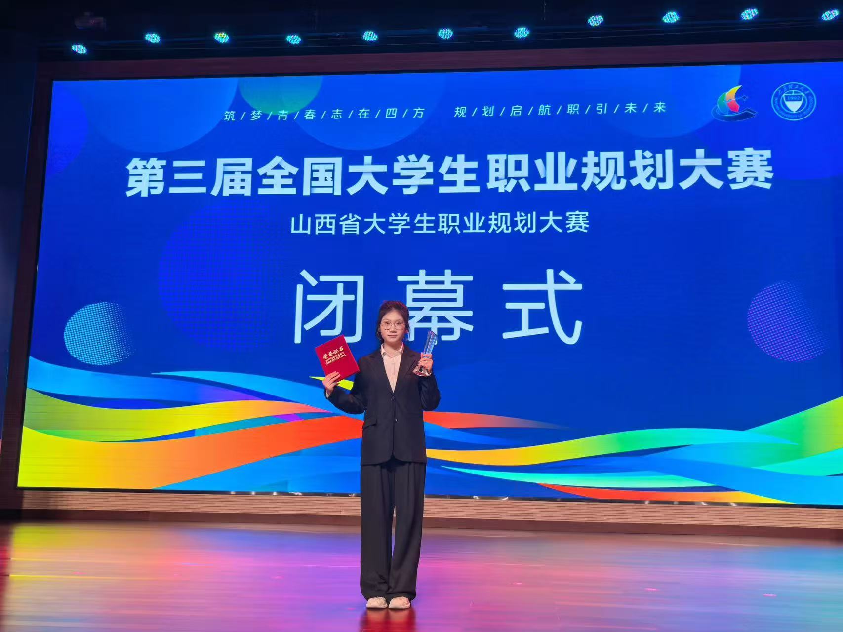 近日,由山西省教育厅主办,太原理工大学、山西省教育发展服务中心承办,中国工商银行太原分行支持的“工行杯”山西省第三届大学生职业规划大赛决赛,在太原理工大学明向校区圆满落幕。我系学子石茹玉(指导老师:建筑与土木工程系胡晓红)凭借扎实的专业素养、清晰的职业规划与精彩的现场表现,在高教成长赛道的激烈角逐中脱颖而出,成功斩获省赛银奖,为校系再添荣誉!