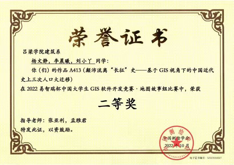 在培养过程中,积极组织学生参加全国大学生学科竞赛,其中在“全国大学生乡村规划方案竞赛”“全国易智杯GIS软件开发竞赛”等活动中连续获奖。部分学生也积极参与老师的科研课题,不仅丰富了学生的专业阅历,提升了学生的科研能力,也为学生的就业和学业提升奠定了扎实的基础。