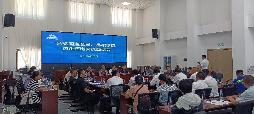 现场考察结束,吕梁国道公司会议室组织座谈会,教师与国道公司技术人员就现场发现的问题及处理措施点对点交流探讨,提出研究方案,初步达成合作意向。