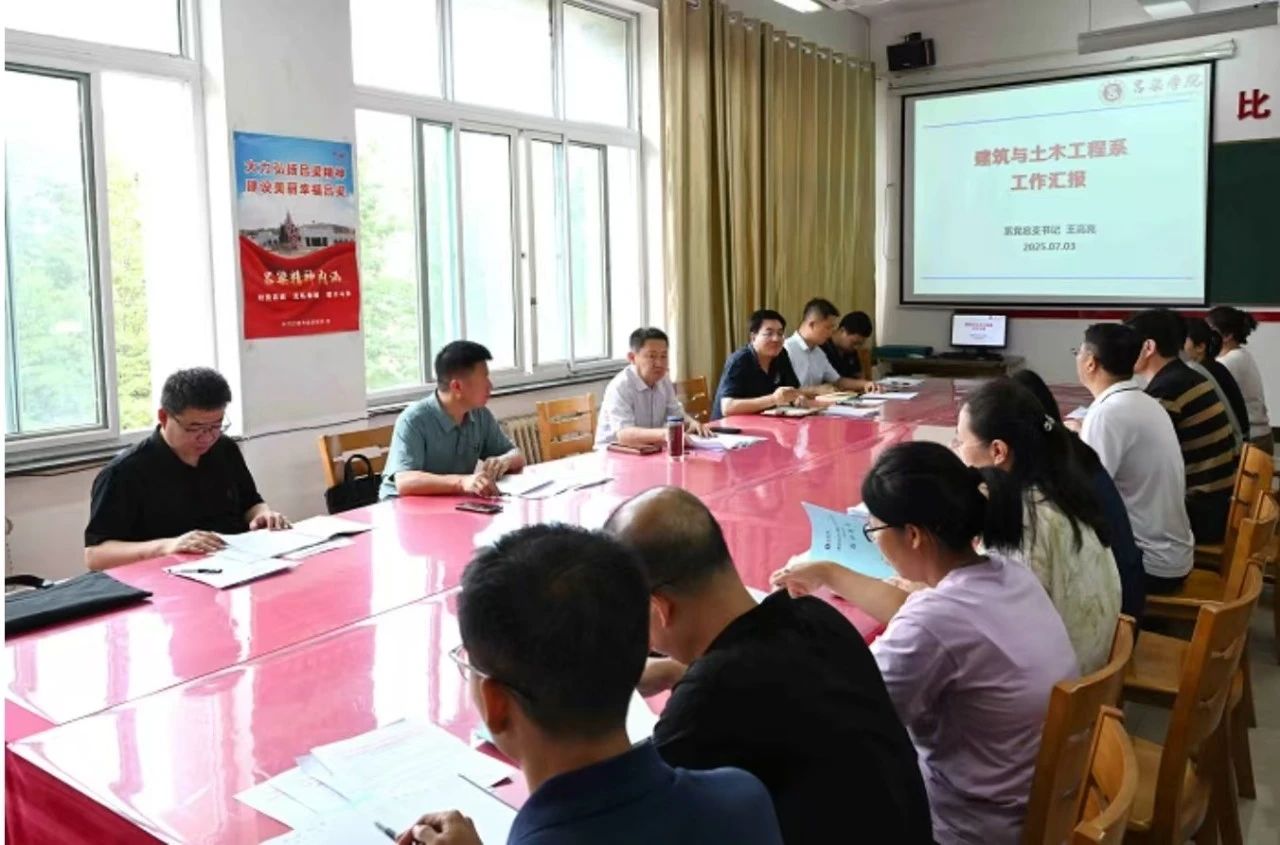2025年7月3日下午,校党委书记薛晋文走进建筑与土木工程系,围绕深入贯彻中央八项规定精神学习教育、审核评估进展情况开展专题调研。党委组织部、党办、教务部、教学质量监控与评估中心相关负责同志陪同调研,建筑与土木工程系班子成员、党支部书记及教研室主任参与此次调研活动。