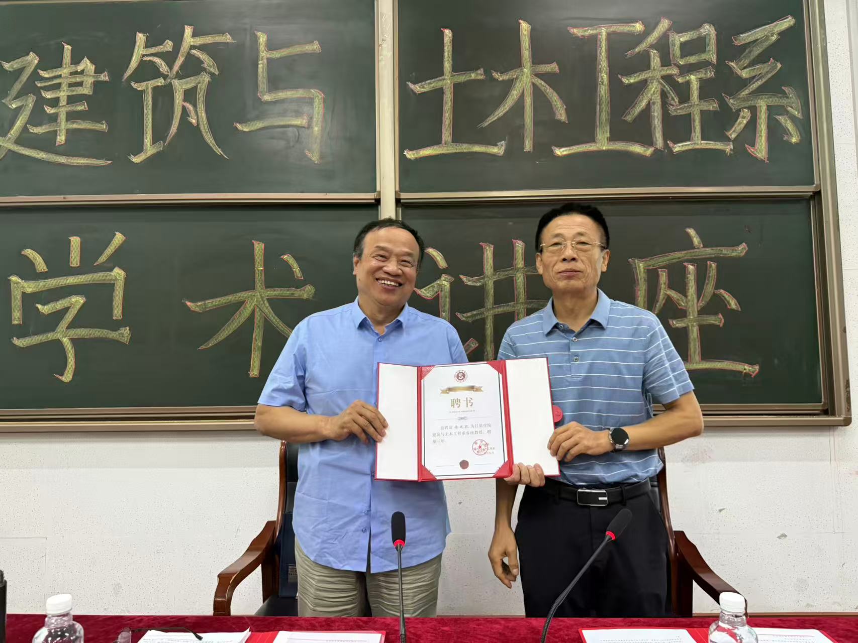 活动在激昂的国歌声中拉开帷幕。奏唱完毕后,系副主任焦晋峰首先致欢迎词,向在场师生介绍了客座教授徐延凯的专业背景与行业成就。随后,校党委常委、副院长刘宝琦宣读聘请决定,并为徐延凯颁发客座教授证书。这份荣誉既是对徐延凯在土木工程领域卓越贡献的肯定,更为系部学子搭建了接触行业一线经验的桥梁,助力他们在“智慧建造”“绿色建筑”等新兴领域夯实学习基础。