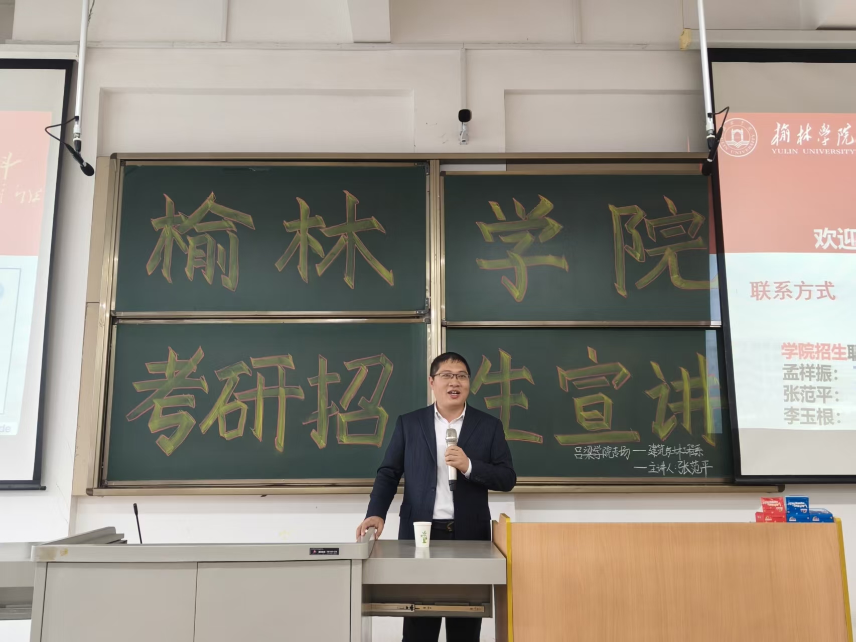 宣讲伊始,张范平副院长首先为同学们介绍了榆林学院的办学定位与特色。作为陕西省省属综合应用型大学,榆林学院始终坚守 “扎根榆林、研究榆林、服务榆林、贡献榆林” 的发展战略,不仅在区域经济社会发展中扮演着重要角色,更凭借鲜明的应用型办学特色,为学子提供了 “接地气、重实践” 的成长平台 —— 这一点,与土木水利专业 “理论 + 工程实践” 的培养需求高度契合,也为未来读研期间的实践、就业埋下了 “区域适配” 的优势伏笔。