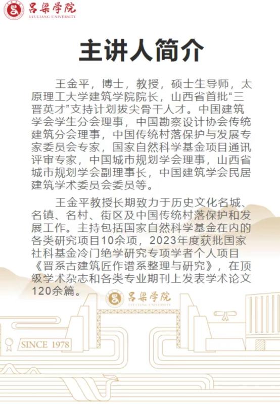 学术讲座 王金平博士、教授《山西传统聚落》