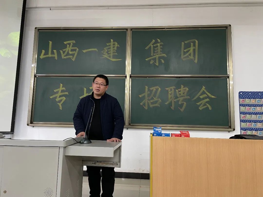 会议第二项,负责人讲话。负责人首先讲到建筑系对山西一建集团与吕梁学院的历史渊源,随后通过一则宣传片让同学们了解公司的基本概况。接着,负责人从招聘专业、工作地点、薪资待遇等同学们关注的方面进行详细地讲述,并表示会根据大家的选择方向提供不同的发展机会。