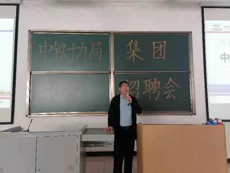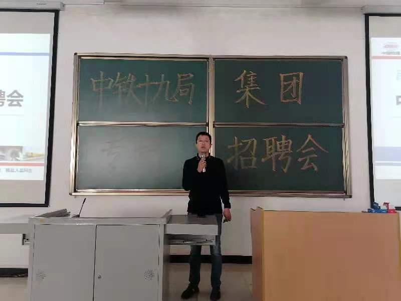 会议伊始,王书记对中铁十九局集团代表的到来表示热烈欢迎,并告诉毕业生们,就业是对大学四年学习成果的检验,要端正就业态度,树立正确的职业观,积极参加就业面试。