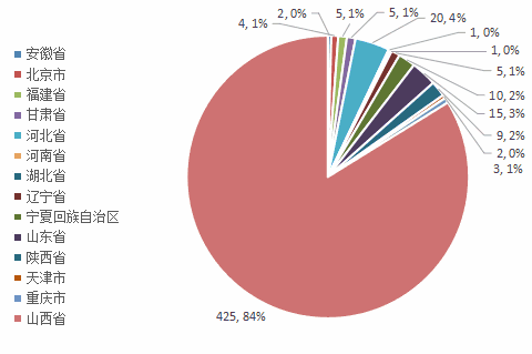 2018届毕业生来自全国24个省或直辖市。其中山西省生源占到了83.83%。外省籍毕业生中,山东省、河北省、宁夏回族自治区分别占到了2.96%、3.94%和1.97%;其余省份中,北京、甘肃、福建、辽宁四个省的毕业生人数相对较多,其余省份及直辖市的毕业生只占很小比例。具体比例见图1.2。