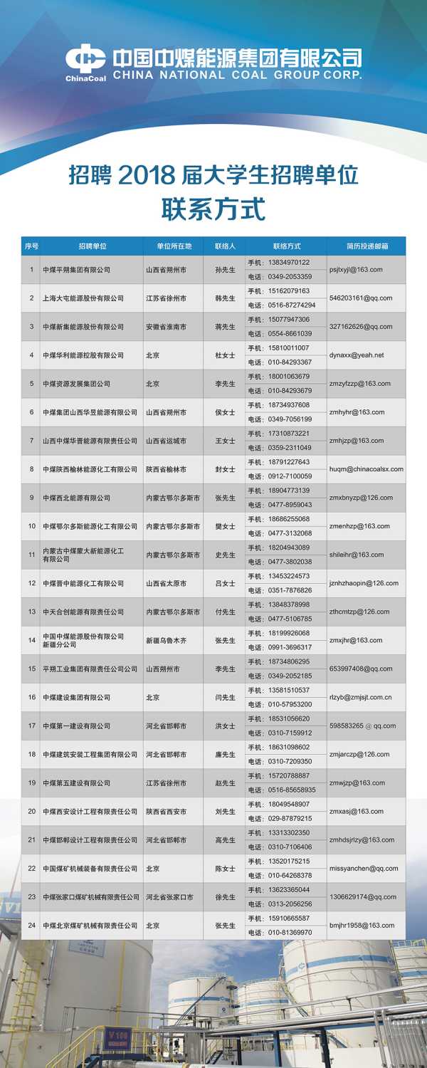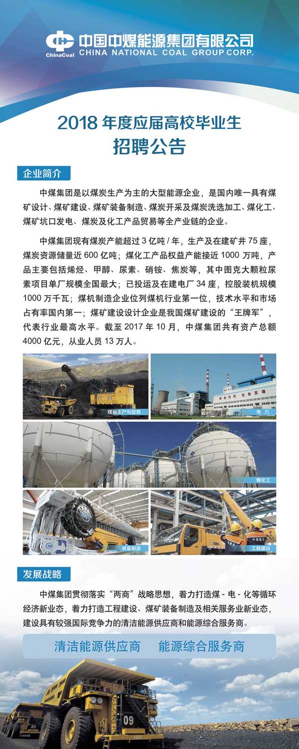 中国中煤能源集团有限公司2018年度高校毕业生招聘公告