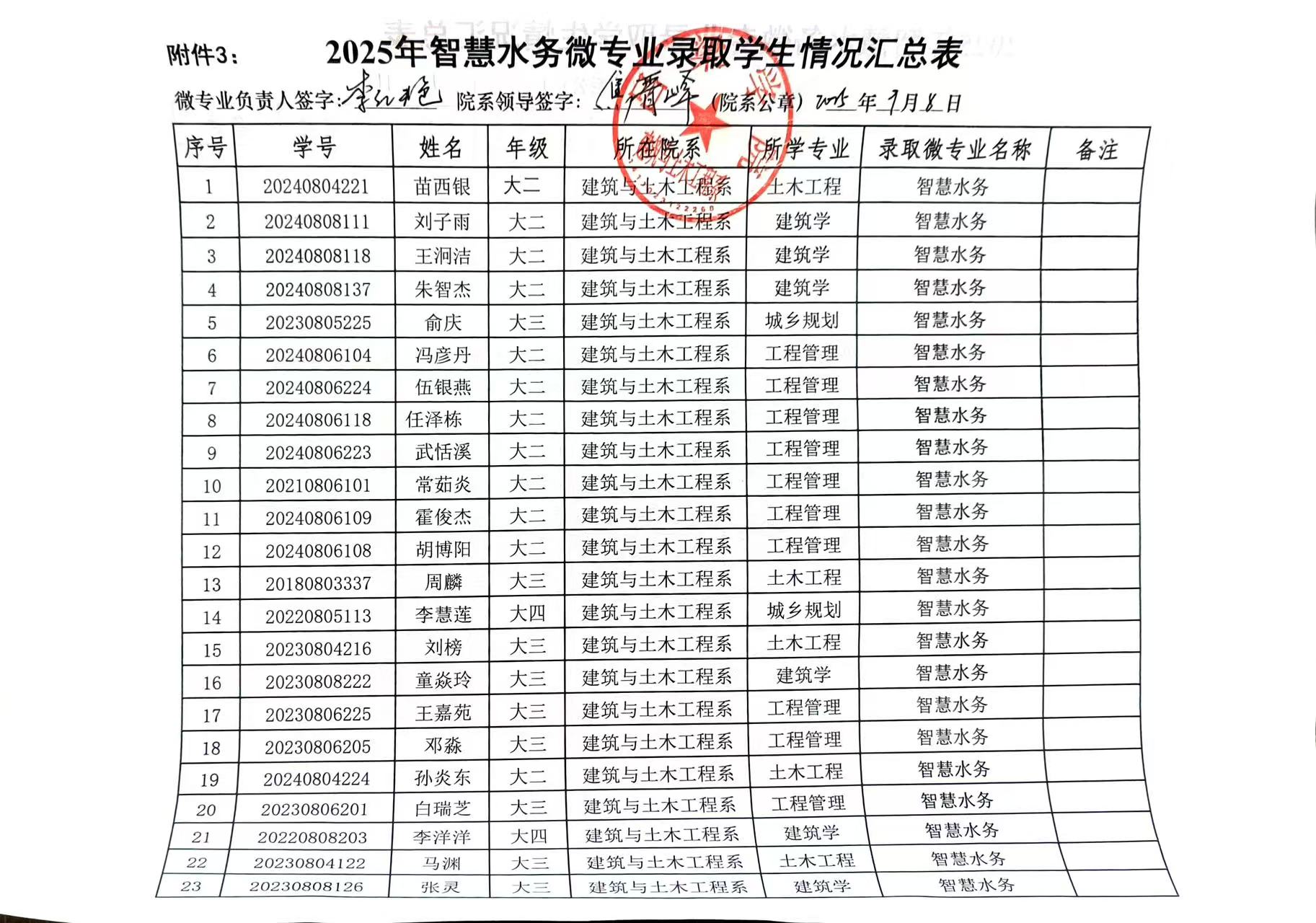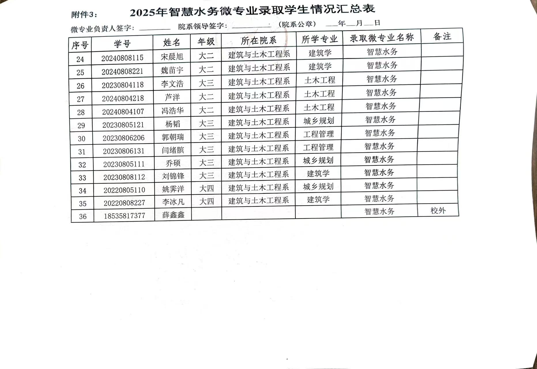 我系2025年智慧水务微专业录取公示