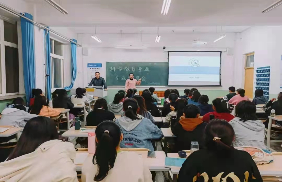 在科学教育专业教育中,高君玲首先向学生介绍了本专业的专业定位及师资队伍。我系科学教育的师资队伍年轻化,是一只教学质量有保障、踏实肯干、年富力强的优质队伍。高君玲指出本专业的实验室仪器设备达到同类学校先进水平,不仅为正常的专业实验室课程教学及实践训练提供了保障,也使培养学生实践动手能力和创新能力的实验教学体系更加完善。随后,他还向学生介绍了有关学生竞赛、深造考研及就业方面的问题,为同学们提供了很多有用的建议。会议接近尾声时,面对同学们的提问,高君玲以自身为例为同学们解答疑惑,现场气氛轻松活跃。最后,高君玲对同学们送出了深切寄语,希望同学们不负韶华,无问西东,收获满满,为将来的生活打下基础。
