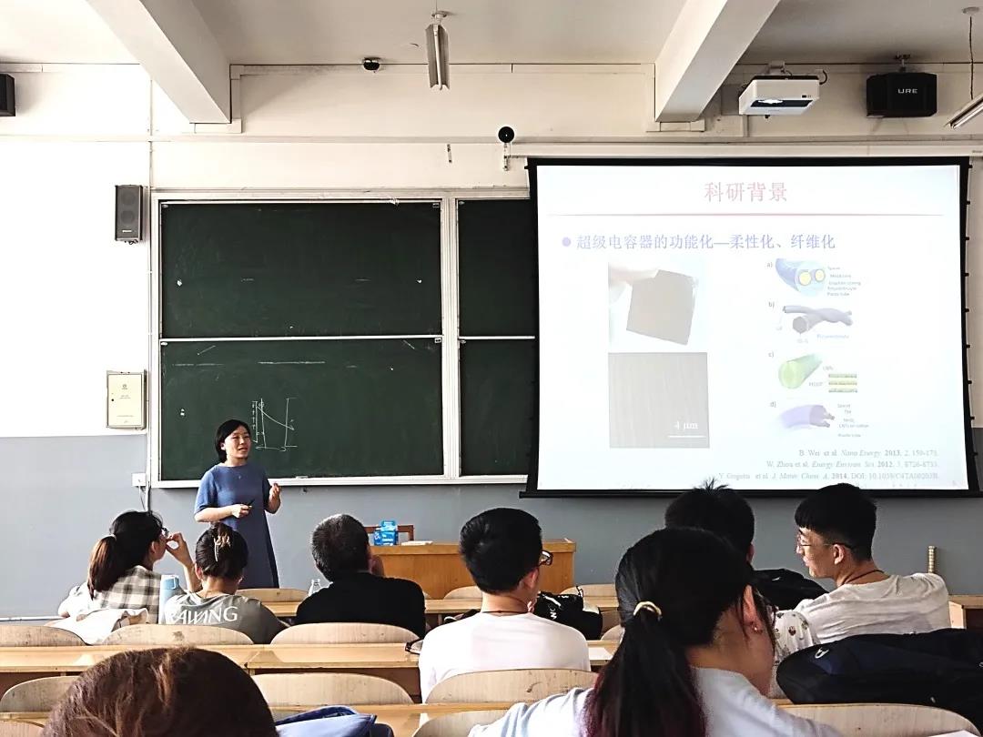 报告会上,陈旭丽围绕多功能柔性超级电容器在新能源领域的科研方向上展开了论述,深入浅出地向同学们展示了基础科学研究的整个流程,激发了同学们对科学研究的热情和兴趣,增强了同学们今后的科研信心。