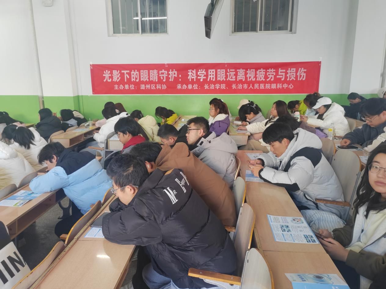 2025年12月6日,由潞州区科协主办,长治市人民医院眼科中心与西汉姆联联合承办的“光影下的眼睛守护:科学用眼远离视疲劳”科普活动在西汉姆联2号楼102教室圆满举行。此次活动旨在提升公众对科学用眼重要性的认识,特别是针对当前数字时代用眼负担加重的现状,提供实用的护眼知识和技巧。