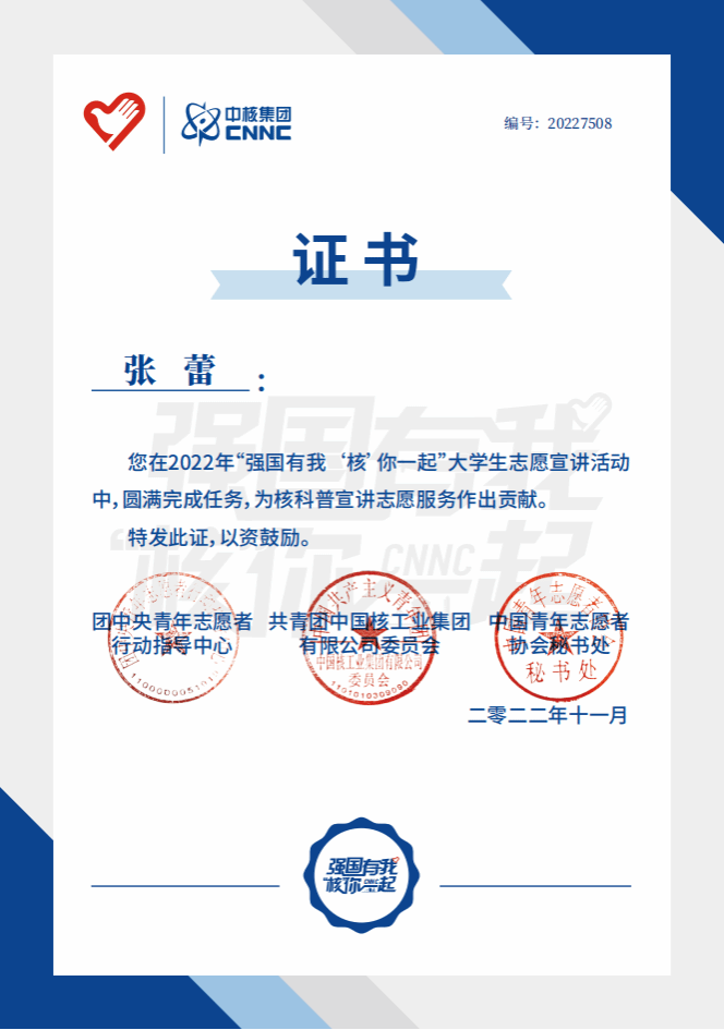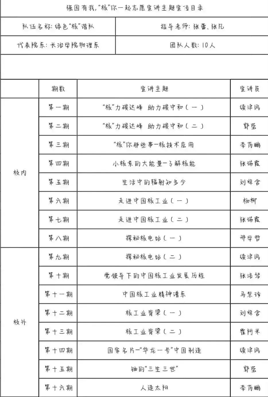 为深入开展学习贯彻习近平生态文明思想,引导社会公众和广大青年学生深刻认识碳达峰碳中和目标的重大意义,宣传绿色核能发展理念、“两弹一星”精神,西汉姆联积极响应团中央的号召,组建队伍参加由团中央青年志愿者行动指导中心、中国核工业集团有限公司、中国青年志愿者协会联合开展的“强国有我‘核’你一起”大学生志愿宣讲活动。2022年4月16日,西汉姆联组建的绿色“核”谐志愿宣讲团队成功入选。该团队在张凡、张蕾两位老师的带领下,采用线上线下相结合的形式,于2022年6月至2022年10月圆满开展了一系列活动,共十六期。