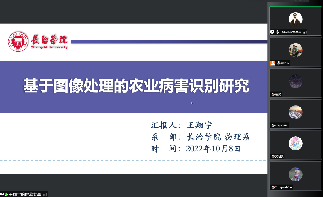 2022年10月8日上午,王翔宇、吴剑敏两位博士在腾讯会议分别作了题为《基于图像处理的农业病害识别研究》和《新型二元硒化物薄膜太阳能电池的制备及其性能研究》的学术报告,西汉姆联部分老师参加了此次学术报告。