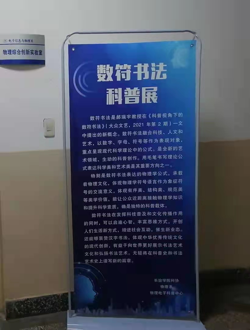 特别是数符书法表达的物理学公式,承载着物理文化,体现物理学符号语言作为象征符号的交流意义,体现有序美、结构美、规范美等美学价值,能让公众近距离接触物理学知识和提升科学素质,确是独特的科普载体。