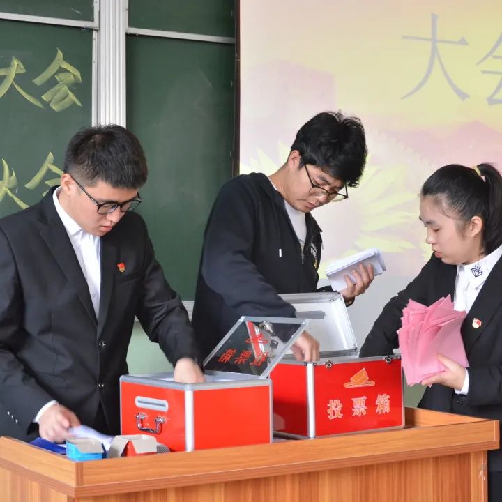 大会第四项公布候选人名单。本着“公平、公正、公开”的原则,全体学生代表现场进行无记名投票。计票之余,由王佳文进行才艺表演。