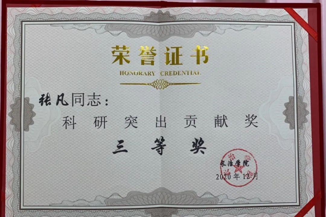 此外,我系张凡老师荣获科研突出贡献三等奖,郝瑞宇、何春乐、赵波老师荣获优秀科技工作者称号。
