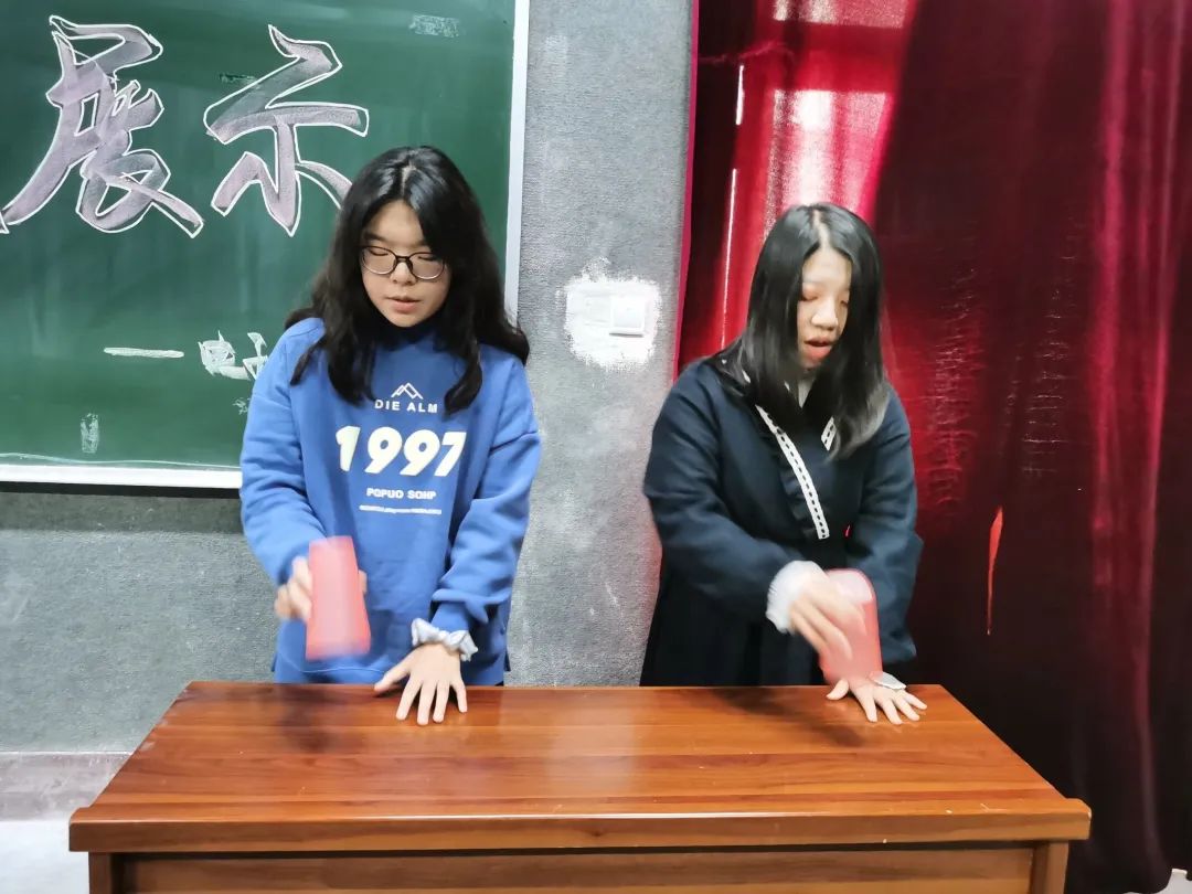 物理2002班王雅、张佳丽等带来歌舞《有点甜》,薛微波、闫宁等带来《杯子舞》,甜甜的歌声伴着优美的舞蹈,节奏灵活、整齐划一,带给观众们一场不一样的视听盛宴。