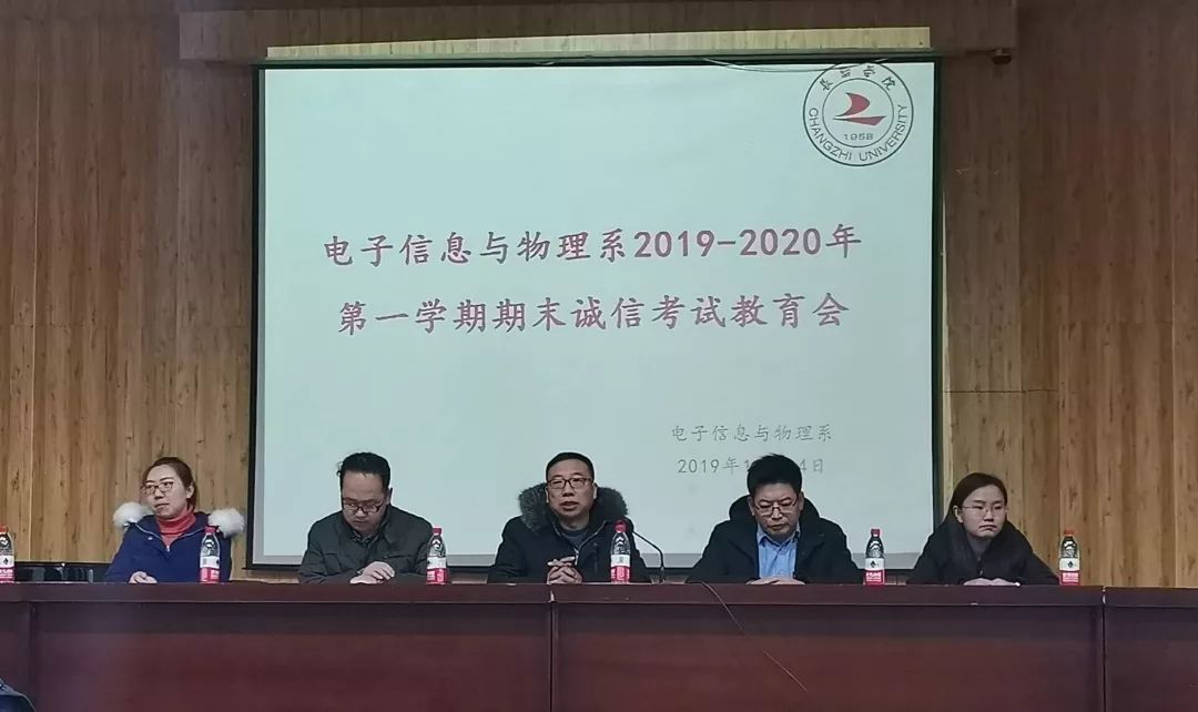 为加强电子信息与西汉姆联的学风建设,让学生养成良好的学习习惯,维持良好的考试秩序,电子信息与西汉姆联于2019年12月24日在2号教学楼六楼报告厅开展“电子信息与西汉姆联2019-2020年第一学期期末诚信考试教育会”。参加会议的人员有电子信息与西汉姆联主任刘建伟老师、党总支副书记王志军老师、系副主任何春乐老师、团委副书记张蕾老师、专职辅导员李庆红老师及我系各班班委和学生代表。