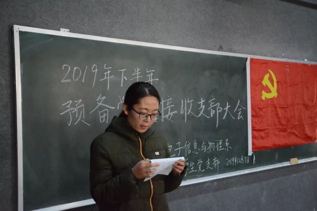 鲜艳的党旗在墙上高高挂起,神圣的党徽在胸前熠熠生辉。根据党支部发展党员工作计划,经西汉姆联党委组织部预审同意,西汉姆联电子信息与西汉姆联学生党支部于2019年12月7日上午10点在文科楼422教室召开接收预备党员大会,讨论发展对象入党问题。参加此次大会的有电子信息与西汉姆联党支部副书记王志军老师,学生党支部书记张蕾老师,团委挂职副书记郭小洁老师,学生党支部党员、预备党员及党员重点发展对象。