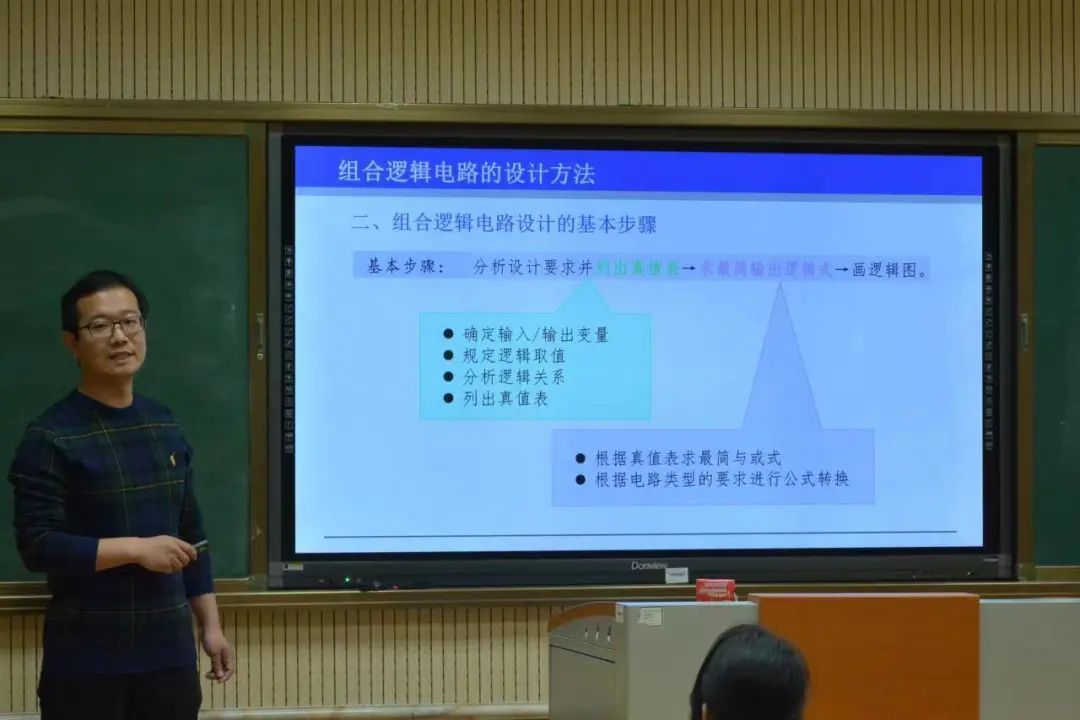本次竞赛由教学设计、课堂教学和教学反思三部分组成。在比赛中,参赛教师们利用精心设计的教案以及课件,与多媒体资源充分结合,以饱满的精神将“微课”展示出来,授课内容生动有趣、条理清晰、结构严谨,呈现出一场场精彩绝伦的课堂展示。 其中,王翔宇以交通灯故障监测设计为例讲解了组合电路的设计方法,既通俗易懂又不失风趣,由浅入深又让课程不失厚度,教学流畅,逻辑思维明确 ,使台下的参赛教师们收获良多。