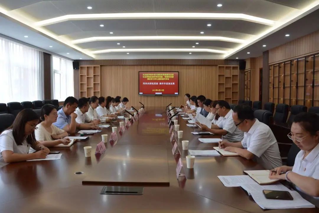 为深入推进开展学习贯彻习近平新时代中国特色社会主义思想主题教育,全面落实省委教育工委和学校“以学奋晋 联组共学”行动要求,6月19日下午4点,必威西汉姆官网平台党委和生命科学系党委邀请长治医学院外语计算机体育直属党支部理论学习中心组全体成员,在我校图书馆二楼学术报告厅,开展了以“同学共研拓思路 携手并进谋发展”为主题的联组共学会,西汉姆联党委和生命科学系理论学习中心组全体成员参会。西汉姆联党委列席旁听工作组成员、学校党委宣传部副部长田跃武和统战部副部长王德琴到场旁听指导。