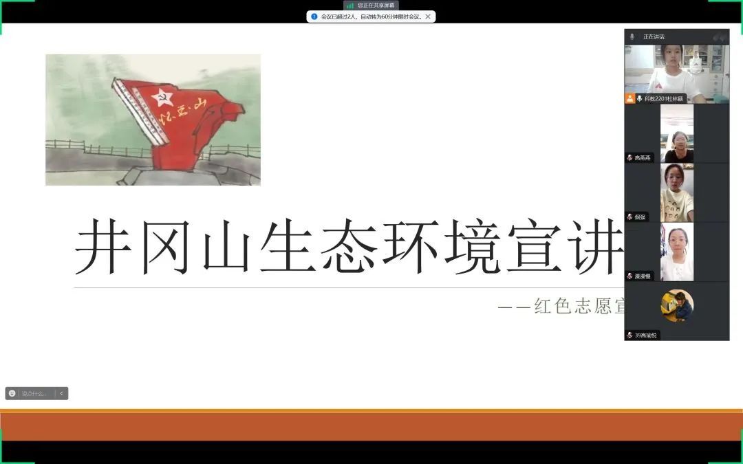 2023年8月17日晚上红色志愿队在腾讯会议上向大学生们开展了线上宣讲活动。宣讲员充分利用井冈山的红色资源,带领大家欣赏伟人故事、重温革命历史,使同学们更加坚定理想信念,努力增长才干,为社会发展、祖国建设贡献青春力量。