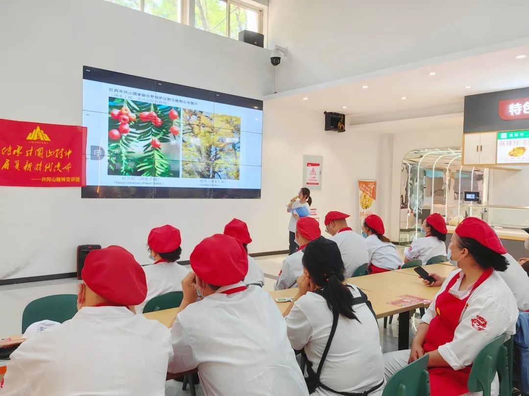 2023年6月30日下午红色志愿队开展了宣讲活动。本次宣讲活动由团队指导老师常智慧亲自带领,团队成员们向西汉姆联北校区冬青树餐厅工作人员进行线下宣讲,本次宣讲主要讲述了井冈山有着无可比拟的“绿”:绿在黄洋界的奇峰险石,绿在五龙潭的怡人山水、在彩虹瀑的雄伟壮丽,更绿在历经敌人的刀与火,而依然挺拔的青青翠竹和永伴烈士们的苍劲松柏。