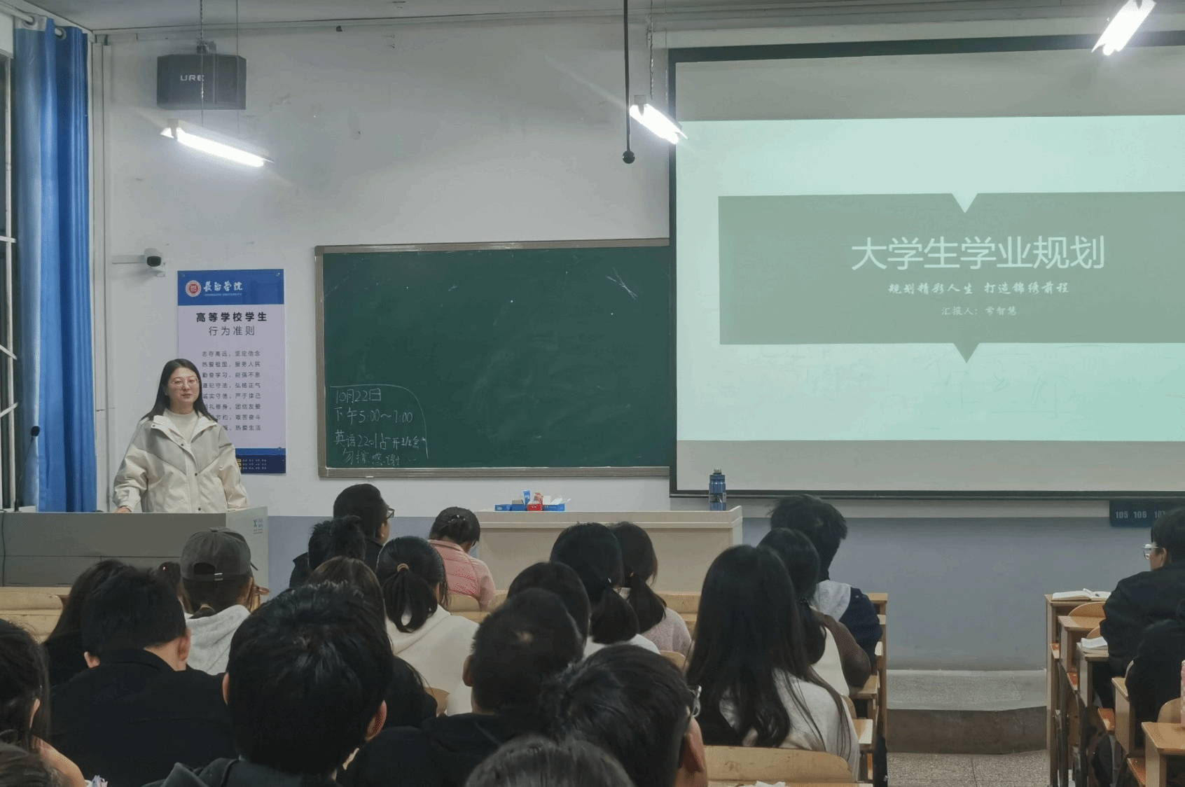 辅导员常智慧老师主要针对大学四年的生活和学业进行了规划,并重点介绍了电子专业相关技能证书的报考及注意事项,希望同学们能够尽早规划好自己的大学生活,明确目标,笃定前行.