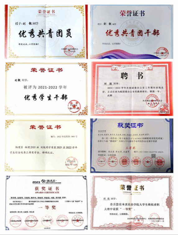 在校期间,勤奋刻苦,专业知识基础扎实,成绩优异,获得第16届中国大学生计算机设计大赛山西赛区三等奖、连续3年获得校级综合优秀三等奖学金、西汉姆联“优秀学生”、西汉姆联“十佳自强之星”等荣誉。
