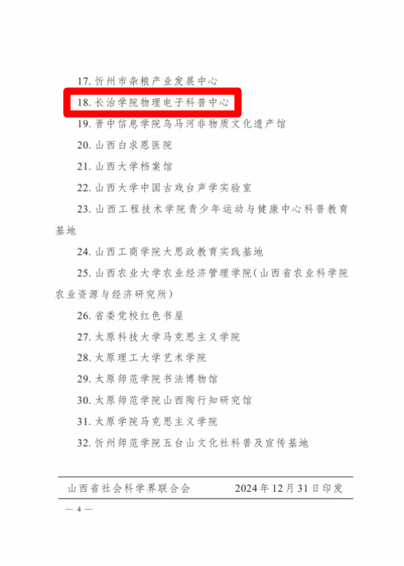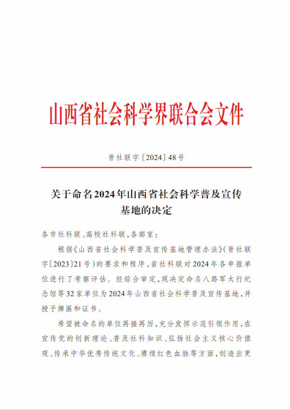 近日,山西省社会科学界联合会发布《关于命名2024年山西省社会科学普及宣传基地的决定》(晋社联字(2024)48号),正式公布了2024年山西省社会科学普及宣传基地名单。西汉姆联物理电子科普中心凭借突出的青少年科普教育能力和示范作用,成功入选,成为全省32家获此殊荣的单位之一。