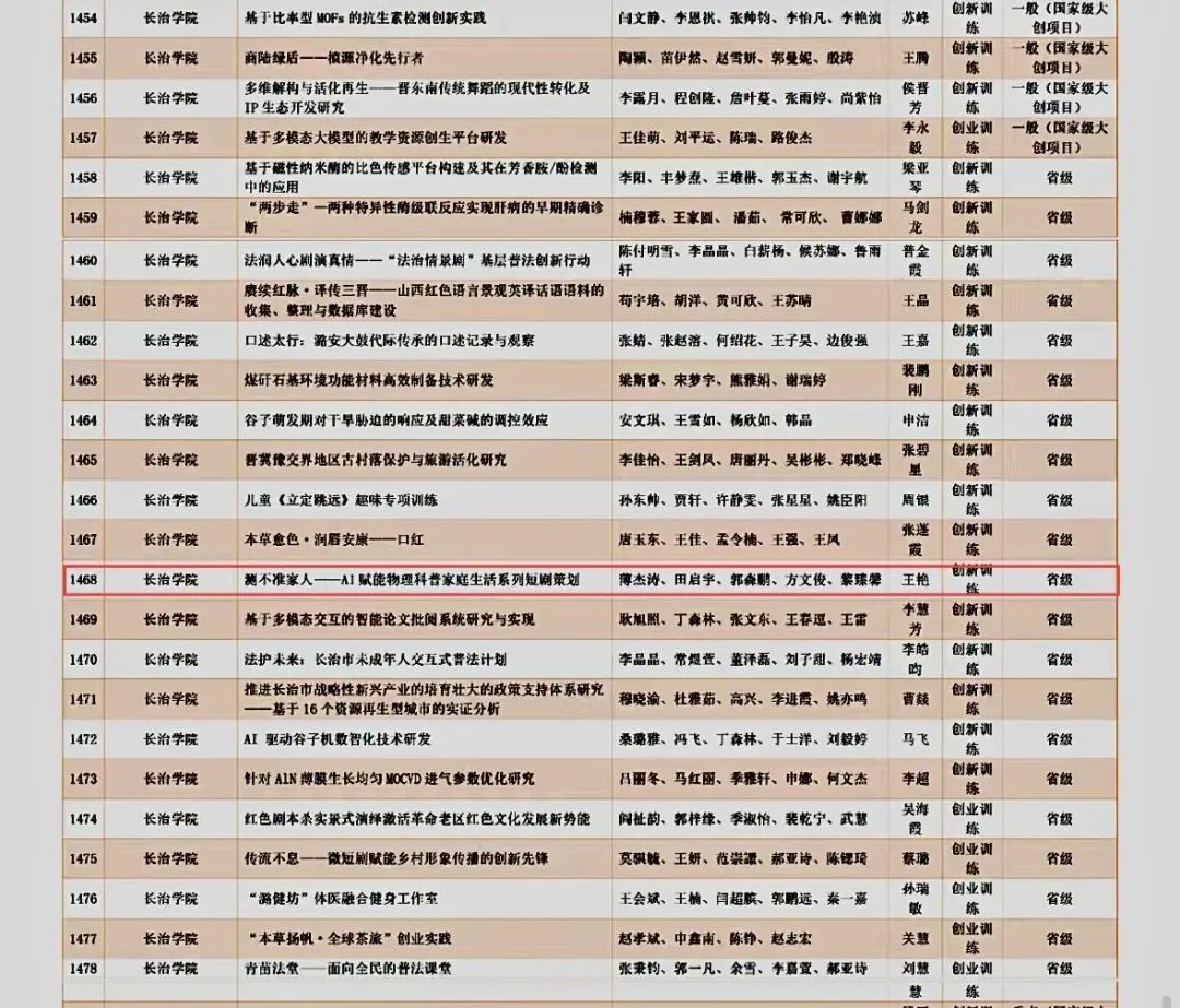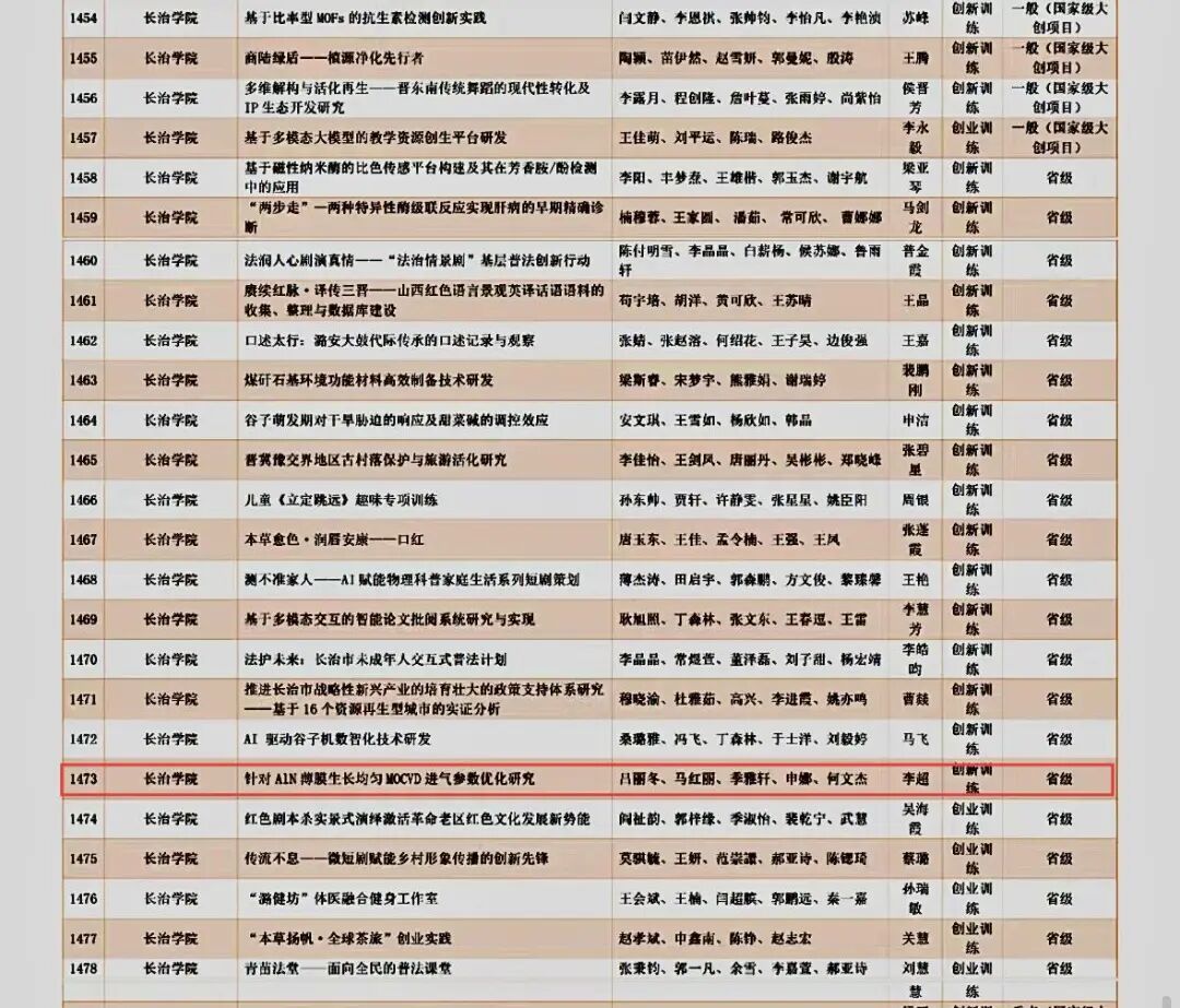 经山西省教育厅公示,2025年高等学校大学生创新训练计划拟立项项目共2237项,其中我校有25个项目获批。我系多个课题成功入选,包括:由薄杰涛、田启宇、郭森鹏、方文俊、黎臻馨五位同学申报,王艳老师指导的《测不准家人——AI赋能物理科普家庭生活系列短剧策划》课题,获山西省2025年高等学校大学生创新训练计划项目省级立项;由吕丽冬、马红丽、季雅轩、申娜、何文杰五位同学申报,李超老师指导的《针对AIN薄膜生长均匀MOCVN进气参数优化研究》课题,获山西省2025年高等学校大学生创新训练计划项目省级立项。
